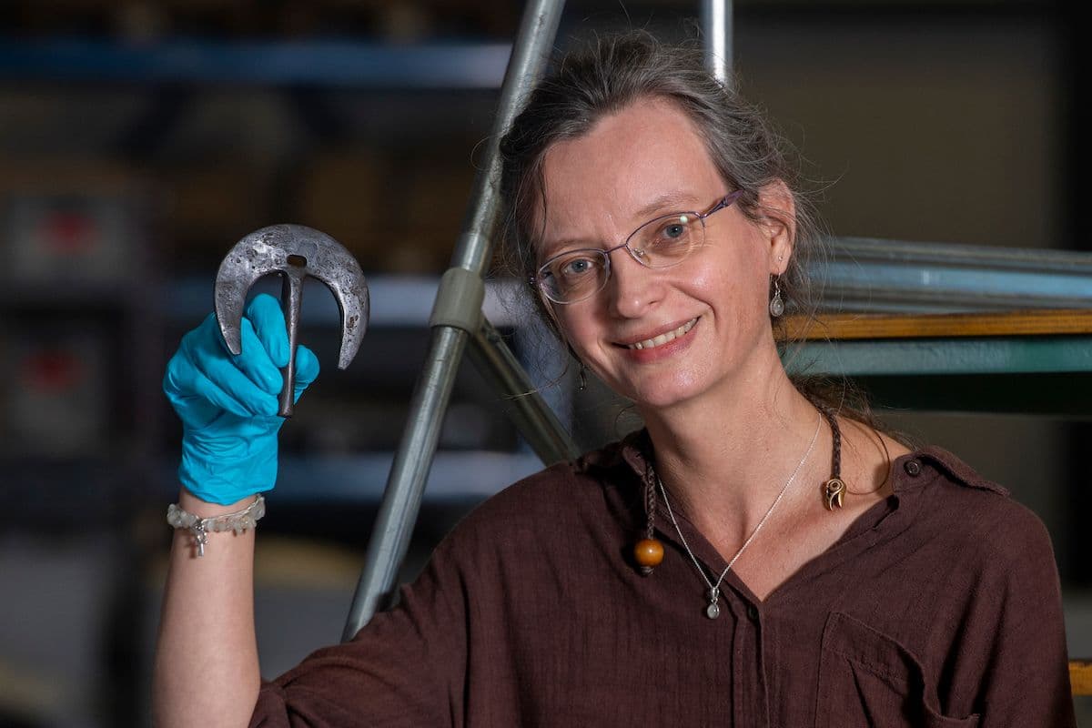 Deze maand de vondst van Tess. Zij is registrator bij het Archeologisch Depot Gelderland en laat ons een luns (aspin) zien.