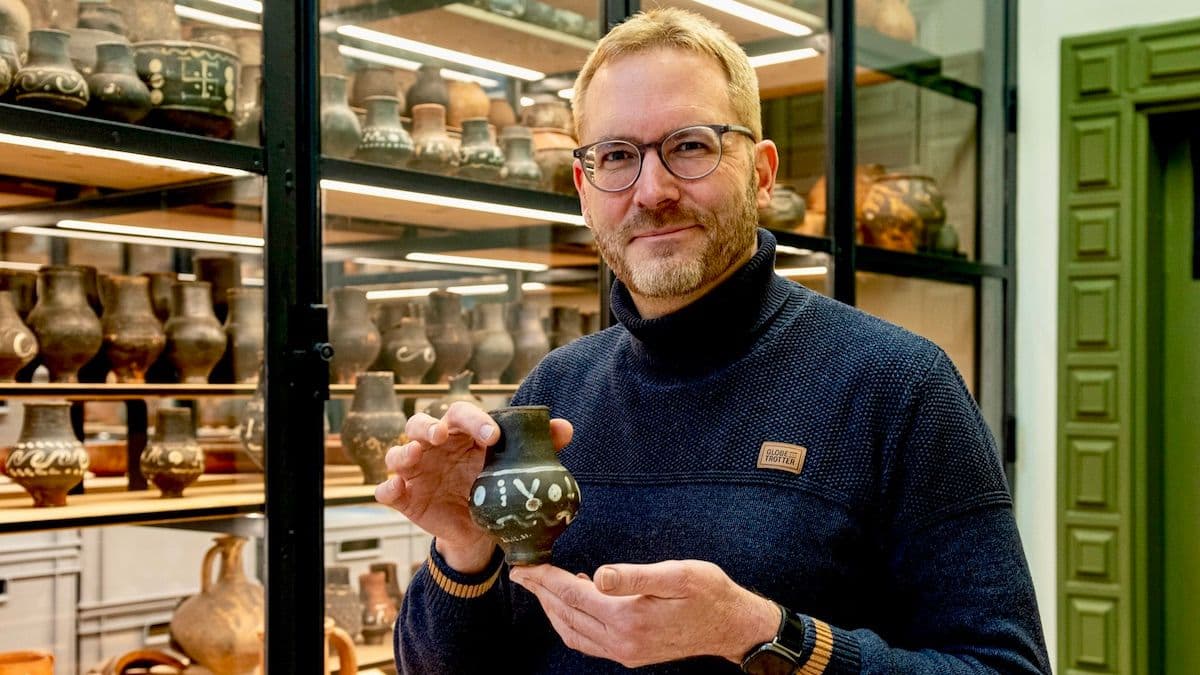 Deze maand de vondst van Stephan. Hij is manager van het Archeologisch Depot Gelderland en toont ons een spreukbeker, die ook nog goed past bij vandaag: Valentijnsdag.