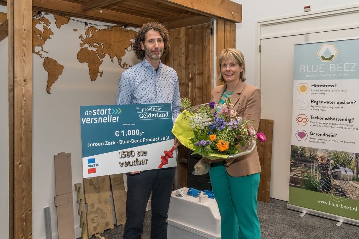 De Startversneller ondersteunt jonge Gelderse bedrijven sinds 2018. Zij kunnen met vouchers een businesscoach inschakelen. Hierdoor is de kans groter dat starters slagen. Dit levert een aantal sterke spelers op, die doorstromen naar verdere ontwikkelingsfases. Zo ook Jeroen Zark, oprichter en eigenaar van Blue-Beez Products: “Onze businesscoach gaf goede adviezen vanuit zijn eigen ervaring. Mede door zijn inzichten hebben we belangrijke keuzes gemaakt en ons product verbeterd.”