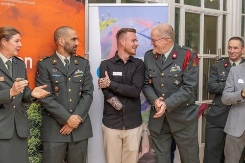 Hij raakte zwaargewond tijdens een missie in Afghanistan, en is nu actief bij Defensie en enthousiast zitvolleyballer. Nadine Ermers weet uit eerste hand wat de huidige oorlogsdreiging op ons continent betekent; zij ging direct na de Russische inval in Oekraïne met een missie naar Roemenië. Ook Cor Keijzer werd apart toegesproken. Hij is oprichter van het netwerk van veteranen in de regio Oost-Nederland en steunpilaar voor medeveteranen.
