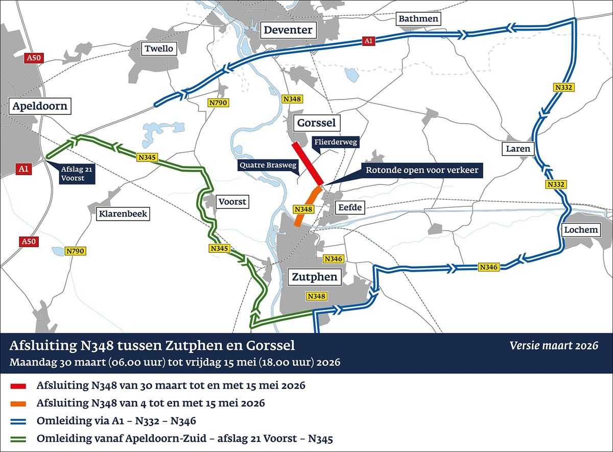 Bij de eerdere wegafsluiting tussen Gorssel en Eefde (oktober 2025) maakten automobilisten veelvuldig gebruik van sluiproutes in het gebied. We ontvingen daarover ongeveer 300 klachten van aan- en omwonenden. Verder zijn er meerdere verkeersregelaars fysiek aangevallen en zijn er bermen kapot gereden. Daarom zetten we dit keer extra maatregelen in om sluipverkeer te ontmoedigen, namelijk:
